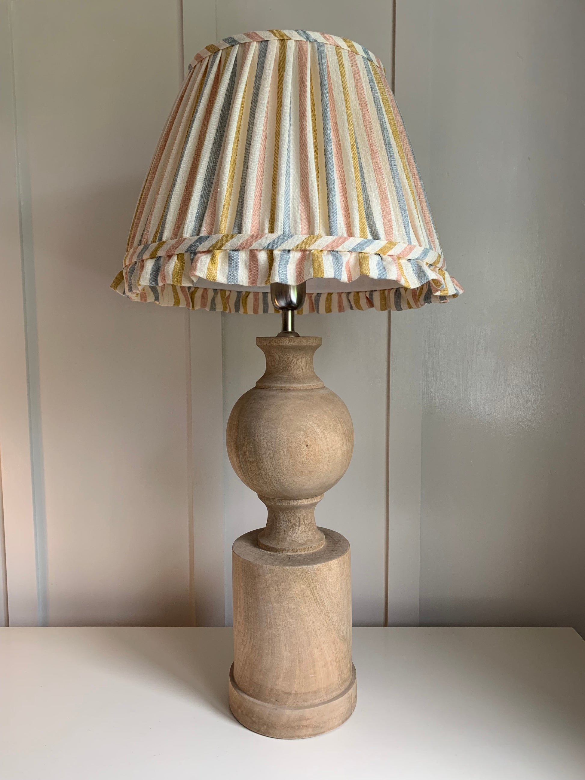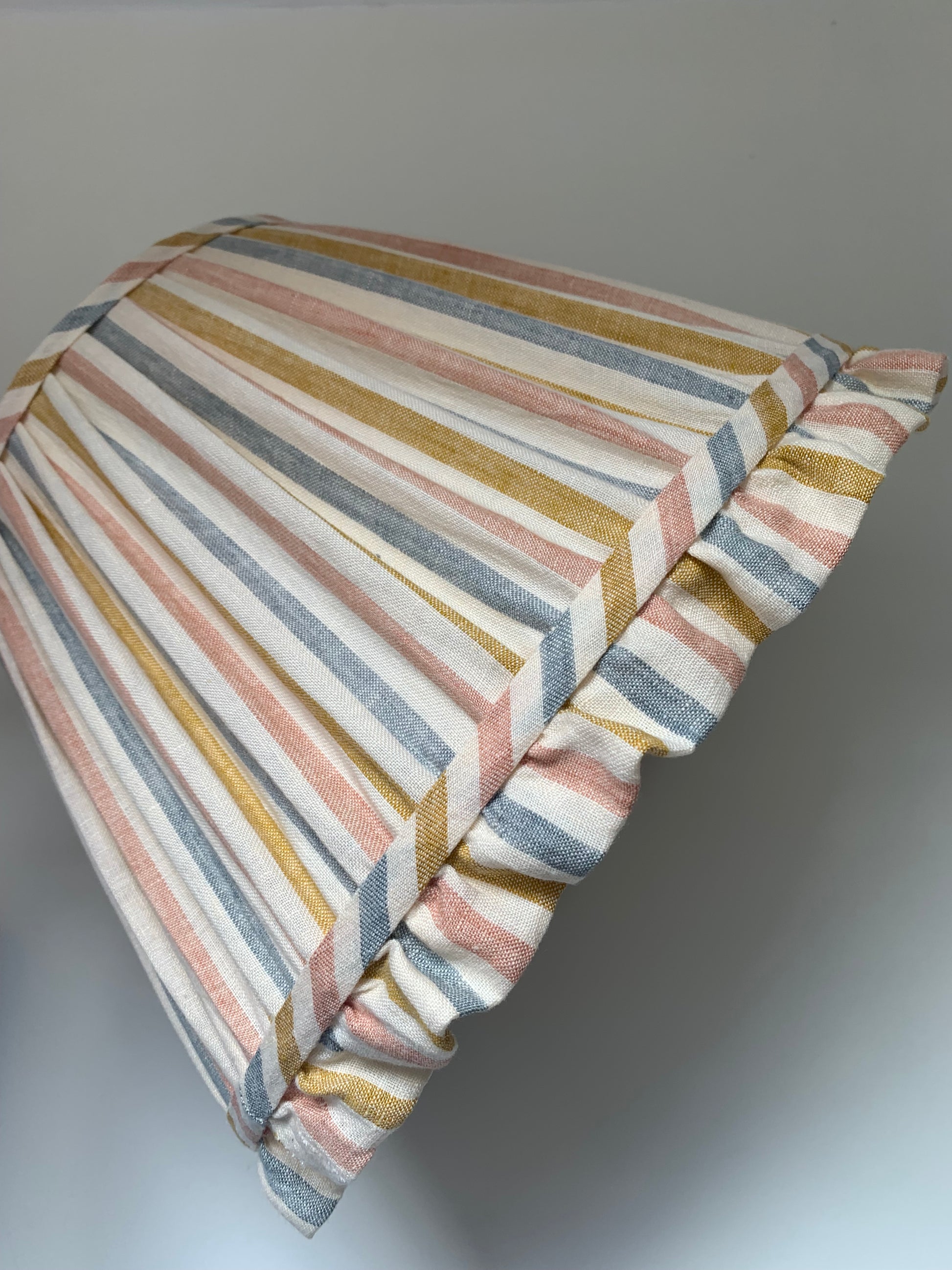 Handsewn with a beautiful, quality pastel striped linen & lined in sheer cream cotton.
